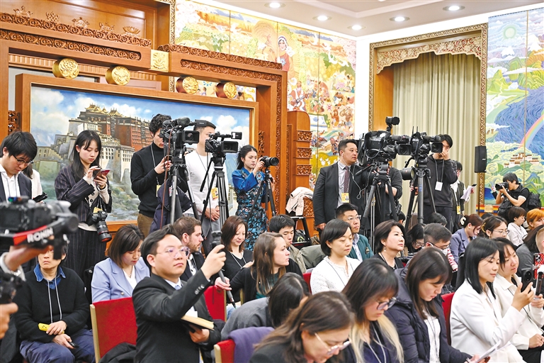 3月6日上午,十四屆全國(guó)人大三次會(huì)議西藏代表團(tuán)舉行開(kāi)放團(tuán)組活動(dòng)。這是活動(dòng)現(xiàn)場(chǎng)。