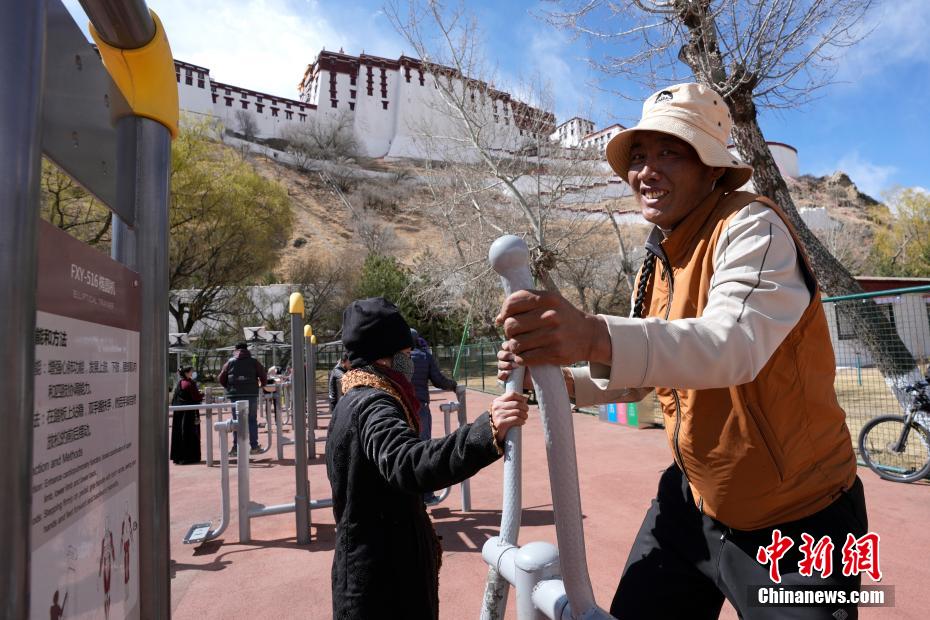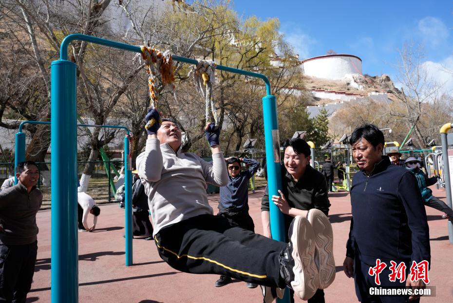 3月13日,民眾在西藏拉薩宗角祿康公園健身。坐落于布達(dá)拉宮腳下的宗角祿康公園是拉薩民眾戶(hù)外活動(dòng)的一大場(chǎng)所。隨著3月春回拉薩,大家來(lái)到公園散步、健身,一片春意盎然的景象。中新社記者 李林 攝