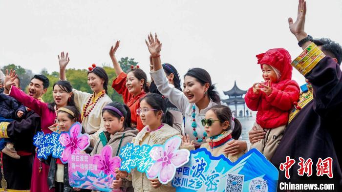 活動(dòng)當(dāng)天,身著彩云紋藏裝的波密兒女踏歌而來,沿著斷橋、雷峰塔等西湖文化地標(biāo),開啟流動(dòng)的藝術(shù)巡演。藏式廣袖輕揚(yáng)間掠過湖光,自發(fā)加入的游客與藏族演員即興共舞,在千年勝景中勾勒出民族交往交流交融的動(dòng)人圖景?;顒?dòng)現(xiàn)場,熱情的藏族姑娘、藏族小伙為參與互動(dòng)的游客送上“桃花氣球”和文創(chuàng)禮品,將高原春日的印記留在江南水岸。