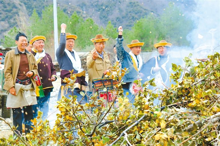 山南市瓊結(jié)縣拉玉鄉(xiāng)村民在煨桑,祈求風(fēng)調(diào)雨順。通訊員 米瑪央金 倫珠澤仁 攝