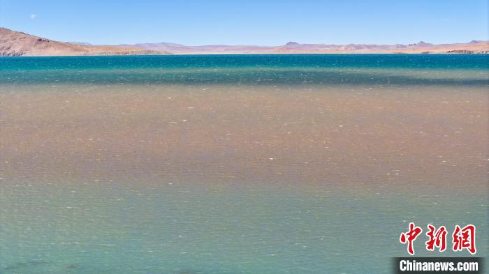 3月27日,航拍西藏自治區(qū)那曲市安多縣錯(cuò)那湖,湖水交匯處好似“鴛鴦火鍋”。錯(cuò)那湖是怒江的源頭湖,海拔4600米左右,是世界上海拔最高的淡水湖,也是青藏鐵路沿線著名景點(diǎn)之一。(無人機(jī)照片)中新社記者 馬銘言 攝