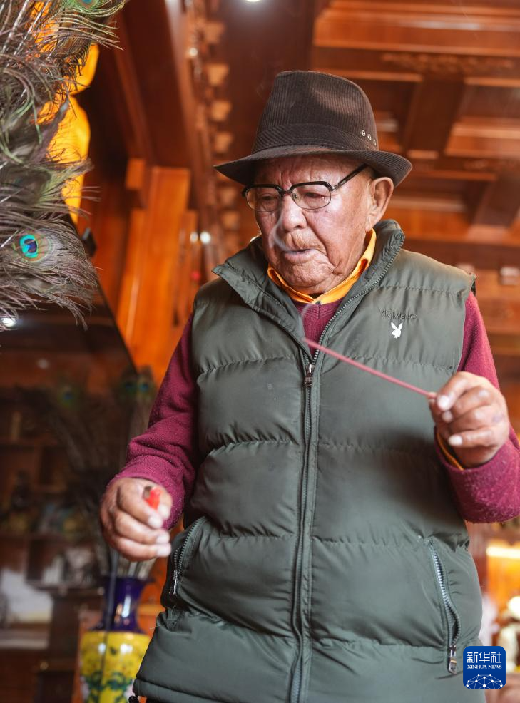 洛桑老人在家點(diǎn)藏香(3月20日攝)。新華社記者 晉美多吉 攝
