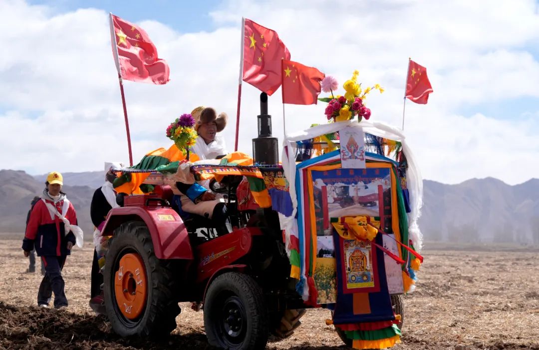 2025年3月16日,西藏拉薩強(qiáng)嘎鄉(xiāng)春耕儀式現(xiàn)場(chǎng)。拖拉機(jī)被盛裝打扮,祈求風(fēng)調(diào)雨順、農(nóng)業(yè)豐收。中新社記者 李林 攝