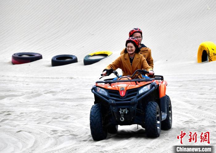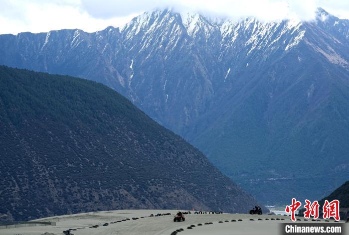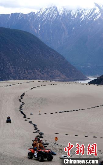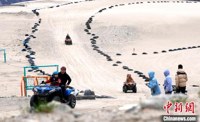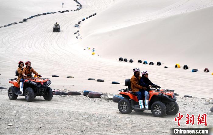 4月4日,游客在西藏米林市丹娘佛掌沙丘景點體驗沙灘車。當(dāng)日是清明假期第一天,眾多游客在該地游玩,樂享美好春光。丹娘佛掌沙丘位于米林市丹娘鄉(xiāng),因沙丘倒影在雅魯藏布江中形成雙手合十的形狀,故被譽為佛掌沙丘。中新社記者 李林 攝