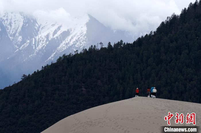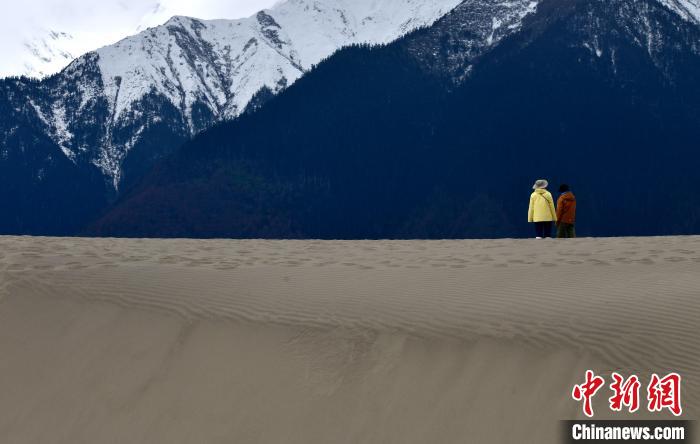 4月4日,游客在西藏米林市丹娘佛掌沙丘景點觀賞。當(dāng)日是清明假期第一天,眾多游客在該地游玩,樂享美好春光。丹娘佛掌沙丘位于米林市丹娘鄉(xiāng),因沙丘倒影在雅魯藏布江中形成雙手合十的形狀,故被譽為佛掌沙丘。中新社記者 李林 攝