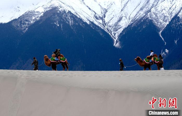 4月4日,游客在西藏米林市丹娘佛掌沙丘景點體驗騎駱駝。當(dāng)日是清明假期第一天,眾多游客在該地游玩,樂享美好春光。丹娘佛掌沙丘位于米林市丹娘鄉(xiāng),因沙丘倒影在雅魯藏布江中形成雙手合十的形狀,故被譽為佛掌沙丘。中新社記者 李林 攝