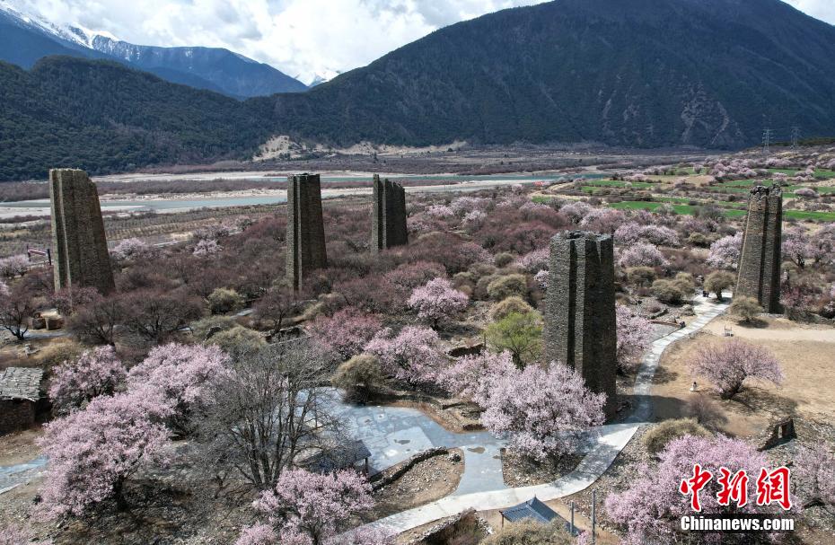 秀巴古堡位于西藏林芝市工布江達(dá)縣,是古代的軍事設(shè)施,距今已有1600多年的歷史。時(shí)下,古堡之下遍布的桃花競(jìng)相綻放,粉白桃花點(diǎn)綴著滄桑古堡,景色壯麗。圖為4月5日,秀巴古堡群下桃花綻放。(無人機(jī)照片)中新社記者 李林 攝