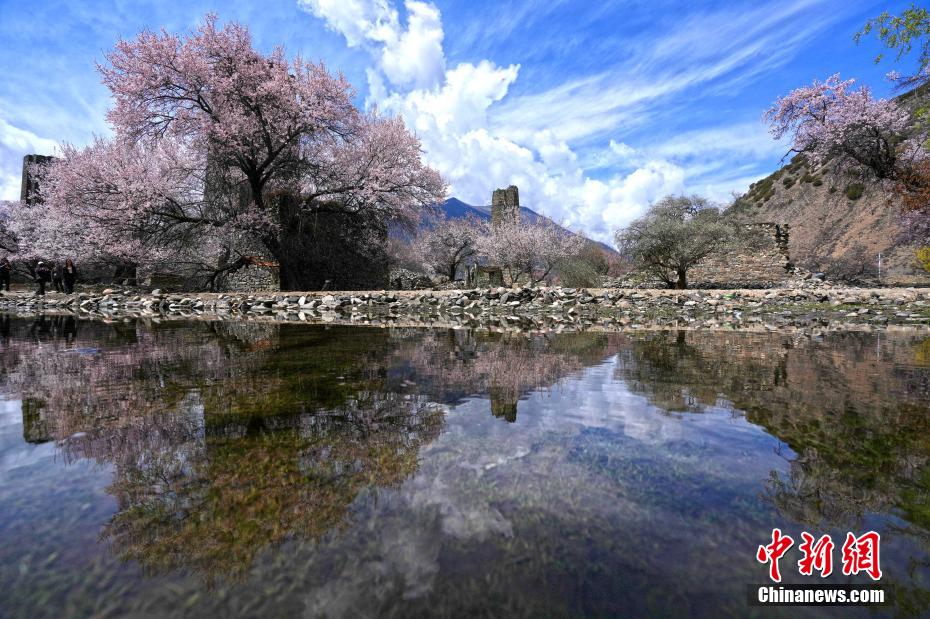 秀巴古堡位于西藏林芝市工布江達(dá)縣,是古代的軍事設(shè)施,距今已有1600多年的歷史。時(shí)下,古堡之下遍布的桃花競(jìng)相綻放,粉白桃花點(diǎn)綴著滄桑古堡,景色壯麗。圖為4月5日,秀巴古堡下桃花綻放。中新社記者 李林 攝