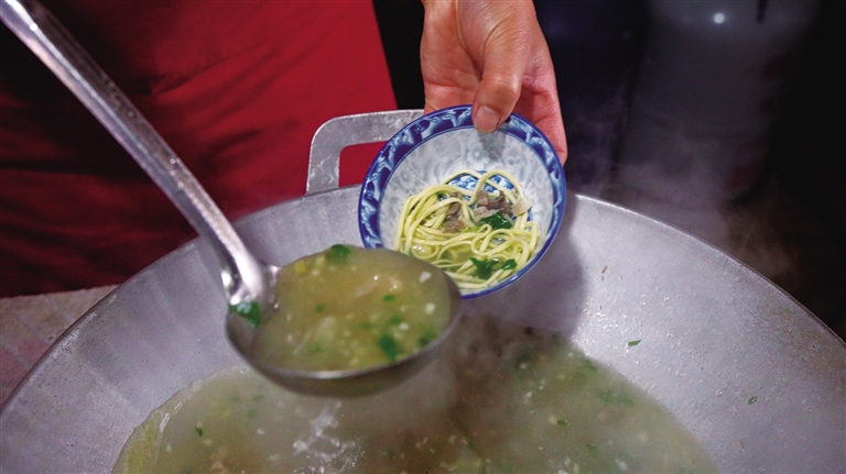 2010年,鹽井加加面被列入西藏自治區(qū)級非物質(zhì)文化遺產(chǎn)代表性名錄。37歲的果拉卓瑪,是這項(xiàng)技藝的傳承者之一。她回憶道,早年父母在街邊支攤賣面時,加加面只是再尋常不過的一道家常面食。如今,這碗面被賦予了文化符號的意義——食客們比拼碗數(shù),最高紀(jì)錄達(dá)147碗,若破紀(jì)錄,還能終生免費(fèi)吃面。“石頭計數(shù)、民歌敬酒,這些傳統(tǒng)習(xí)俗讓吃面變成了一場熱鬧的儀式?!惫楷斝χf。
