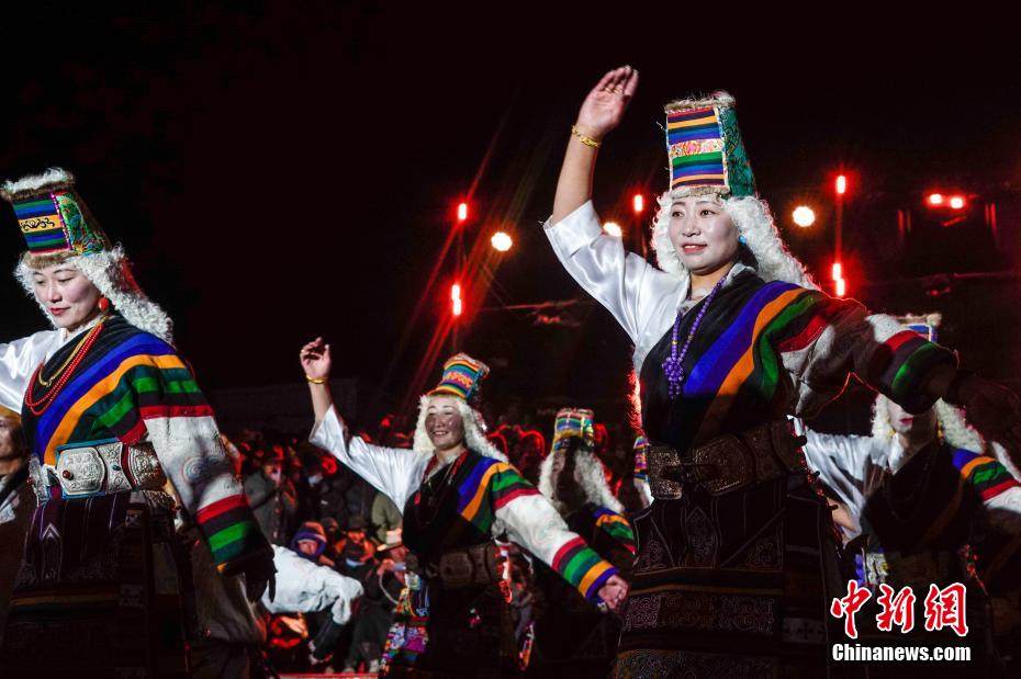 圖為第二屆東日馬超邀請賽上當雄縣藝術團表演精彩的文藝節(jié)目。中新社記者 貢嘎來松 攝