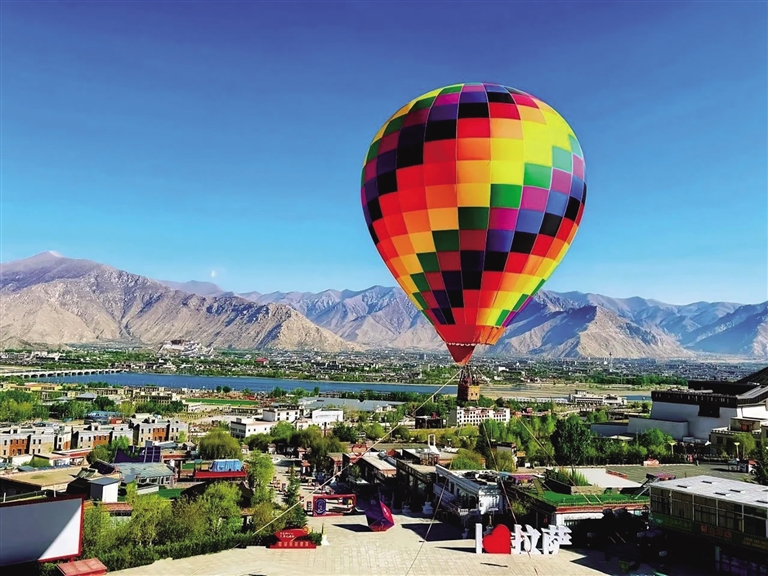 游客可乘熱氣球升至百米高空,俯瞰布達拉宮,遠眺拉薩河,在《文成公主》經(jīng)典配樂中完成“穿越千年,翱翔圣城”的時空對話。
