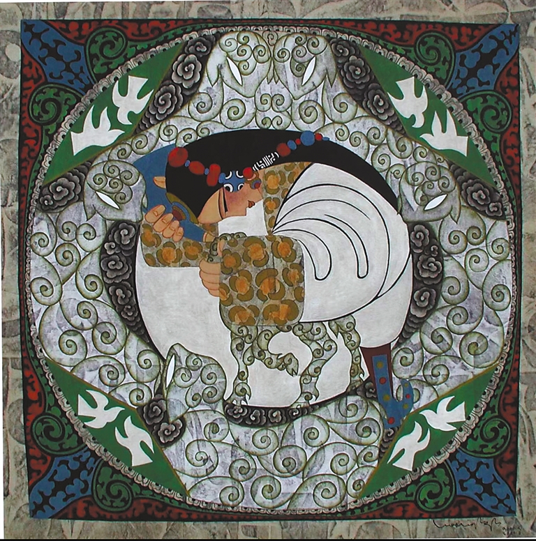 1983年,命運的轉(zhuǎn)機再次降臨。西藏文化部門編纂《西藏舞蹈集成》,急需插圖畫家,“會畫畫的舞者”昂桑被借調(diào),并派至蘇州培訓(xùn)。這段脫離舞蹈訓(xùn)練的經(jīng)歷,讓他明確內(nèi)心方向。1985年,他考入西藏大學(xué)藝術(shù)系,成為唐卡大師丹巴繞旦首批弟子,在導(dǎo)師的指導(dǎo)下,他觸摸到千年礦物顏料的細(xì)膩,領(lǐng)悟了傳統(tǒng)藝術(shù)的精神內(nèi)核。
