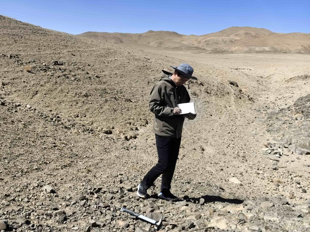 張文朋在西藏開展野外探測任務(wù)。新華社發(fā)
