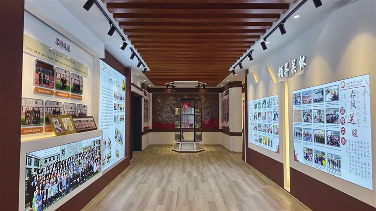 紅領巾講解員楚成白姆指著老照片介紹道:“這是學生當時加入少先隊時的情景,這是學校成立時的教室畫面,這張是建校初期教師自編的教材圖片?!痹谏鲜兰o七八十年代,學校組織學生成立了腰鼓隊、舞蹈隊等,學生們經常登上大型活動的舞臺,用精彩的文藝表演展現(xiàn)著青春風采。