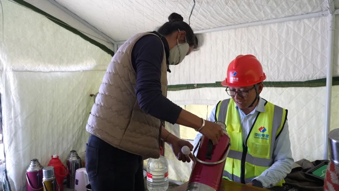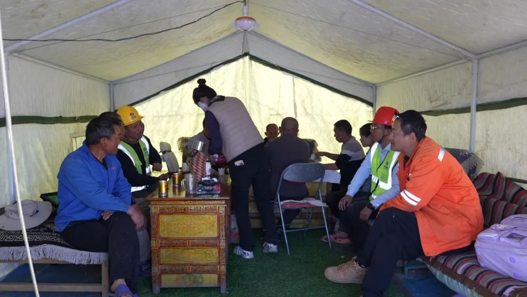 茶館主人巴桑,是村里有名的熱心人。看著施工人員為重建家園奔波,采購物資不便,她果斷在項目部生活區(qū)旁開起小賣鋪。與工人們熟絡后,她又搬來桌椅,搭起簡易帳篷茶館,只為給異鄉(xiāng)人一個歇腳放松之處。