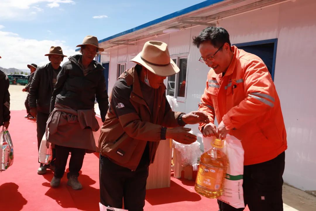 村民的熱情溫暖著施工人員。他們也想著回饋,端午節(jié),項目部工作人員送上米面油等生活必需品,表達對村民的感激與重建決心,真摯情感讓人心連心。