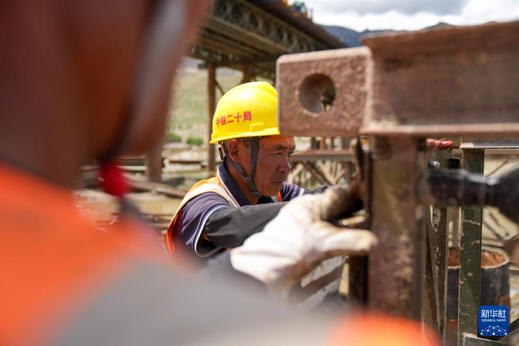 工人在進(jìn)行樁基機械成孔作業(yè)(6月18日攝)。新華社記者 晉美多吉 攝