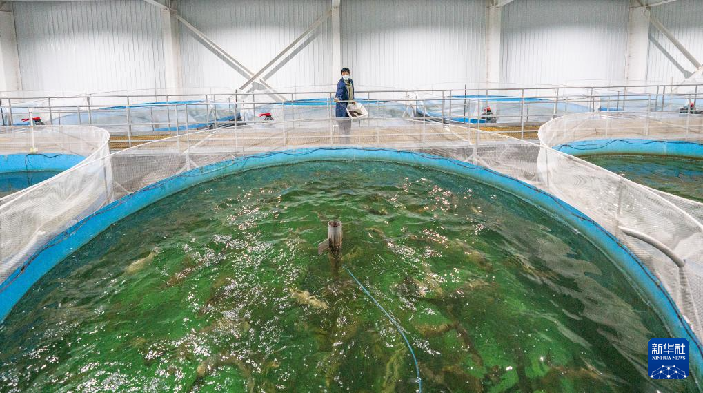 工作人員在育苗車(chē)間給亞?wèn)|鮭魚(yú)魚(yú)苗喂食(6月19日攝)。新華社記者 丁增尼達(dá) 攝