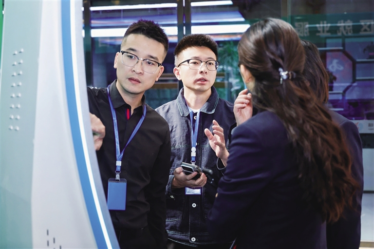 數(shù)字技術應用體驗展區(qū)工作人員正在講解AI技術應用。