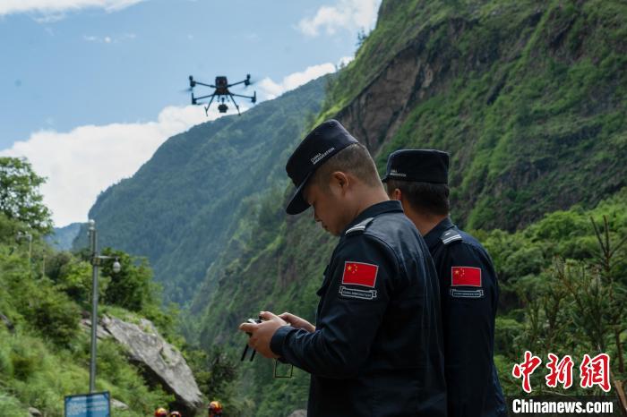 圖為9日,西藏移民管理警察與西藏消防等救援力量,操作無人機(jī)了解現(xiàn)場情況。肖富貴 攝