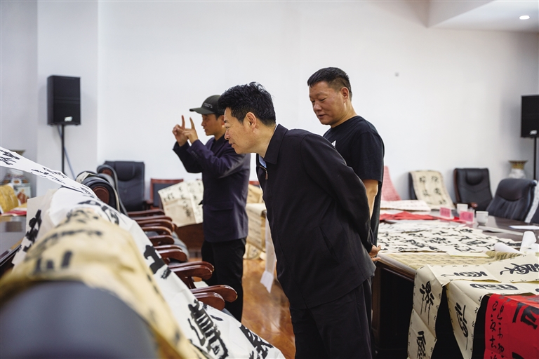下午的漢文書法評(píng)選同樣精彩。兩百多幅參選作品,涵蓋楷書、行書、隸書、草書、篆書五種字體,風(fēng)格多樣,展現(xiàn)出扎實(shí)的書法功底和深厚的文化底蘊(yùn)。中國(guó)書協(xié)會(huì)員、西藏書協(xié)理事田中鶴認(rèn)真地審閱著每一幅作品,他感慨道:“活動(dòng)自啟動(dòng)便獲全國(guó)書法愛好者廣泛關(guān)注,參賽作品不僅數(shù)量可觀,質(zhì)量更值得肯定?!逼渲校坏泉?jiǎng)的楷書作品工整端莊,緊扣“民族團(tuán)結(jié)”主題,既彰顯書法藝術(shù)魅力,又傳遞出“高原紅石榴”象征的團(tuán)結(jié)奮進(jìn)精神,給評(píng)審團(tuán)留下深刻印象。