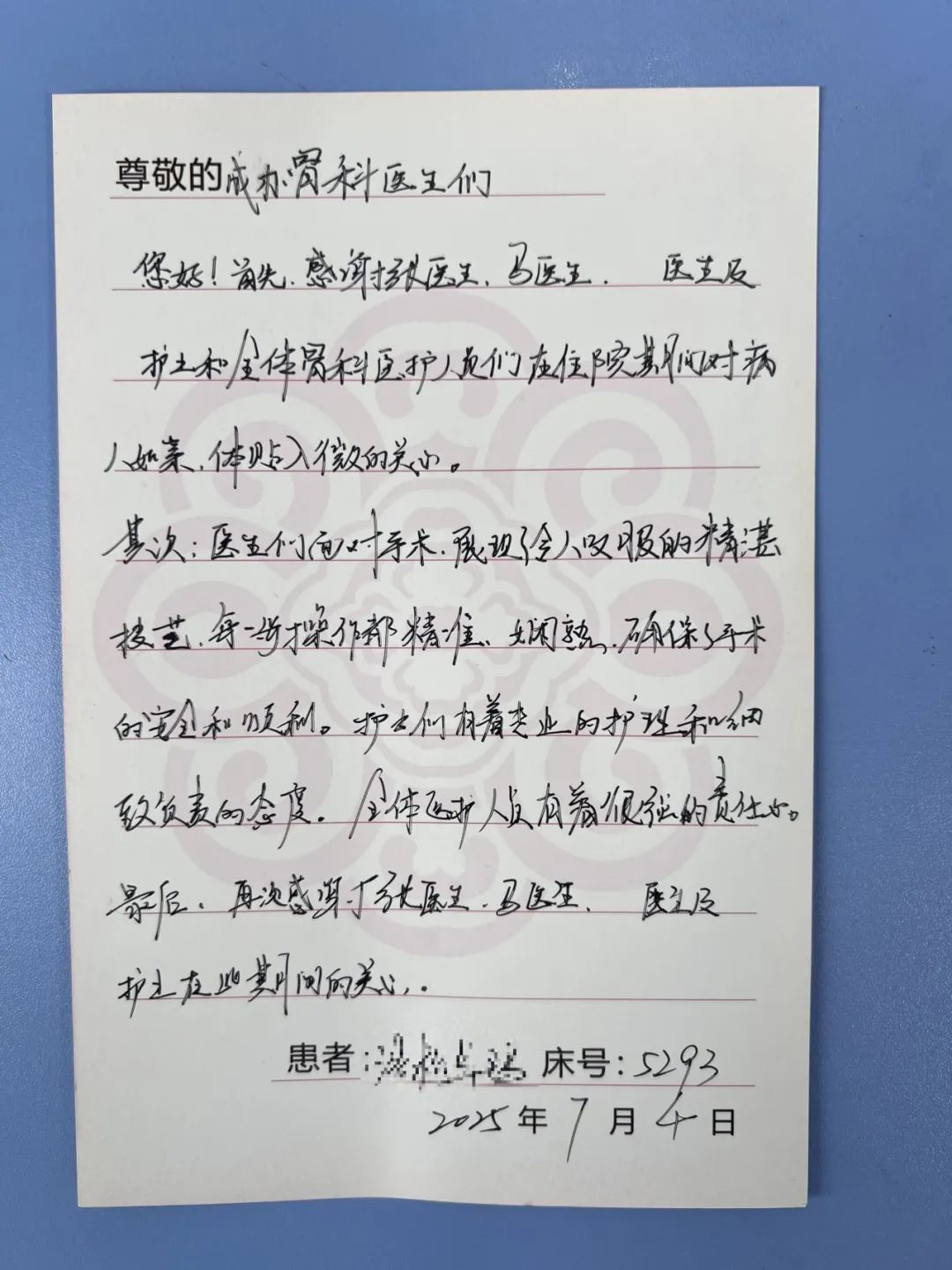 術(shù)后卓瑪阿媽恢復(fù)迅速,第二天就能下地自行活動(dòng)。卓瑪阿媽及家屬對(duì)治療效果非常滿意,特意手書感謝信。