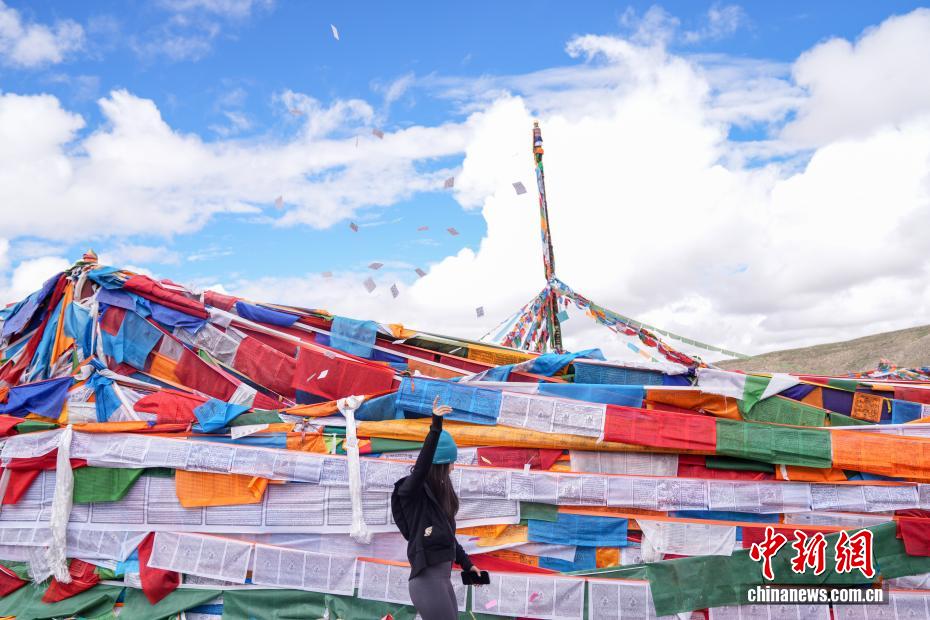 7月21日,一名游客在岡仁波齊山腳下的經(jīng)幡廣場游玩。岡仁波齊位于西藏阿里地區(qū)普蘭縣境內(nèi),是岡底斯山的主峰,也是藏傳佛教的神山之一,每年吸引眾多信徒前往轉(zhuǎn)山,并衍生出徒步旅行的經(jīng)典路線。每年來自國內(nèi)外的徒步旅行者為當(dāng)?shù)貏?chuàng)造就業(yè)機(jī)會的同時,也推動了文旅產(chǎn)業(yè)的發(fā)展。中新社記者 張祥毅 攝