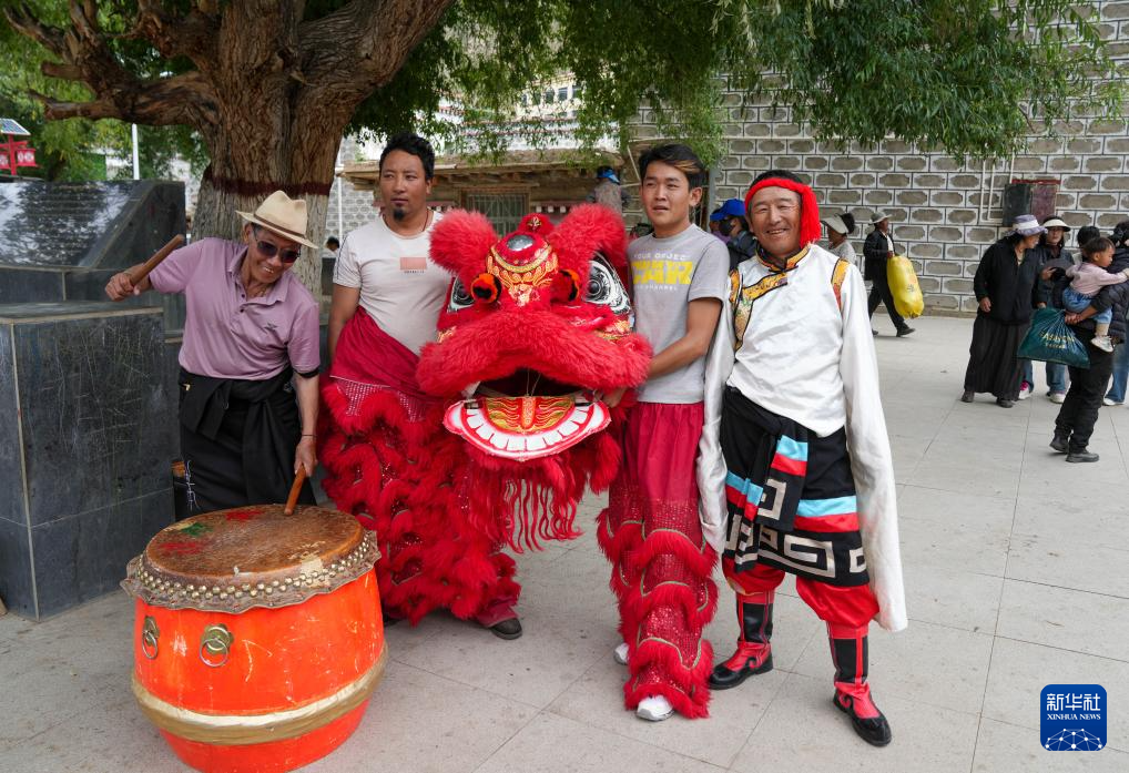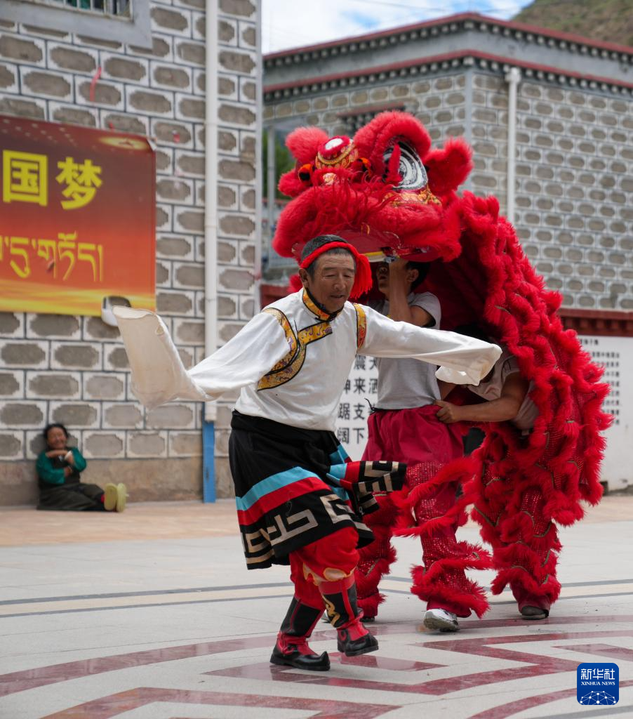 碩督鎮(zhèn)群眾在表演碩督獅子舞(7月21日攝)。新華社記者 晉美多吉 攝