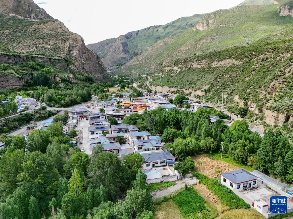 這是7月21日拍攝的西藏林芝市朗縣仲達(dá)鎮(zhèn)拉丁雪村(無(wú)人機(jī)照片)。新華社記者 李鑫 攝