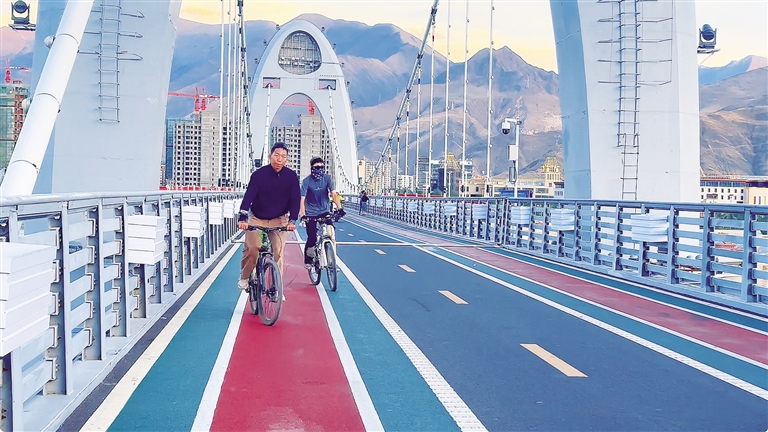 拉薩河畔的公園“綠色騎行帶”,已成為城市休閑健身的亮眼新地標。這條綠色廊道沿河岸蜿蜒延伸,將沿線多個生態(tài)公園與地標景點串聯(lián)成線,其中橫跨河面的“和美橋” 以現(xiàn)代藏式風格的獨特設計格外吸睛,成為騎行愛好者爭相打卡的網(wǎng)紅地。