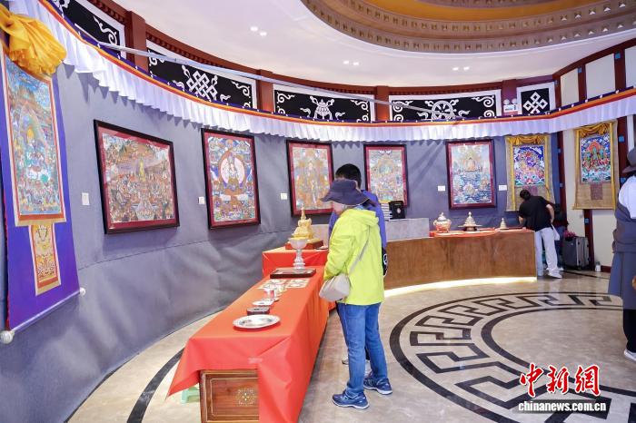 在展廳內(nèi),前來(lái)參觀的觀眾人頭攢動(dòng),他們紛紛駐足欣賞,不時(shí)拿出手機(jī)拍照記錄每一幅經(jīng)典之作,贊嘆唐卡藝術(shù)的精湛技藝和豐富內(nèi)涵。