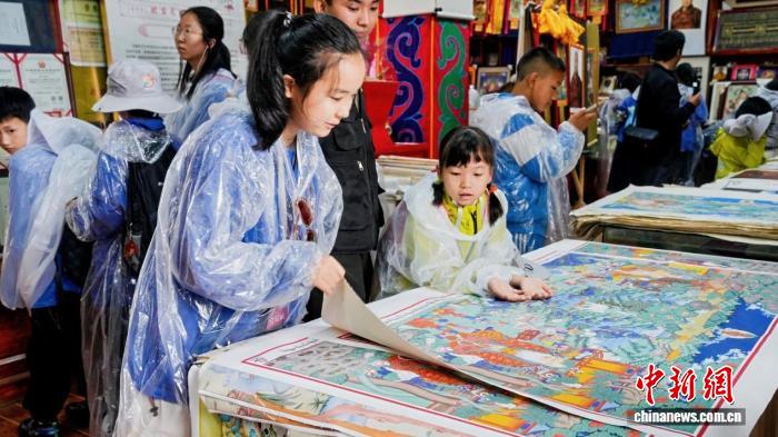 圖為“粵藏同行新時代·石榴籽一家親”活動現(xiàn)場學(xué)生體驗繪制民族團結(jié)卷軸繪畫。林芝市文旅局供圖