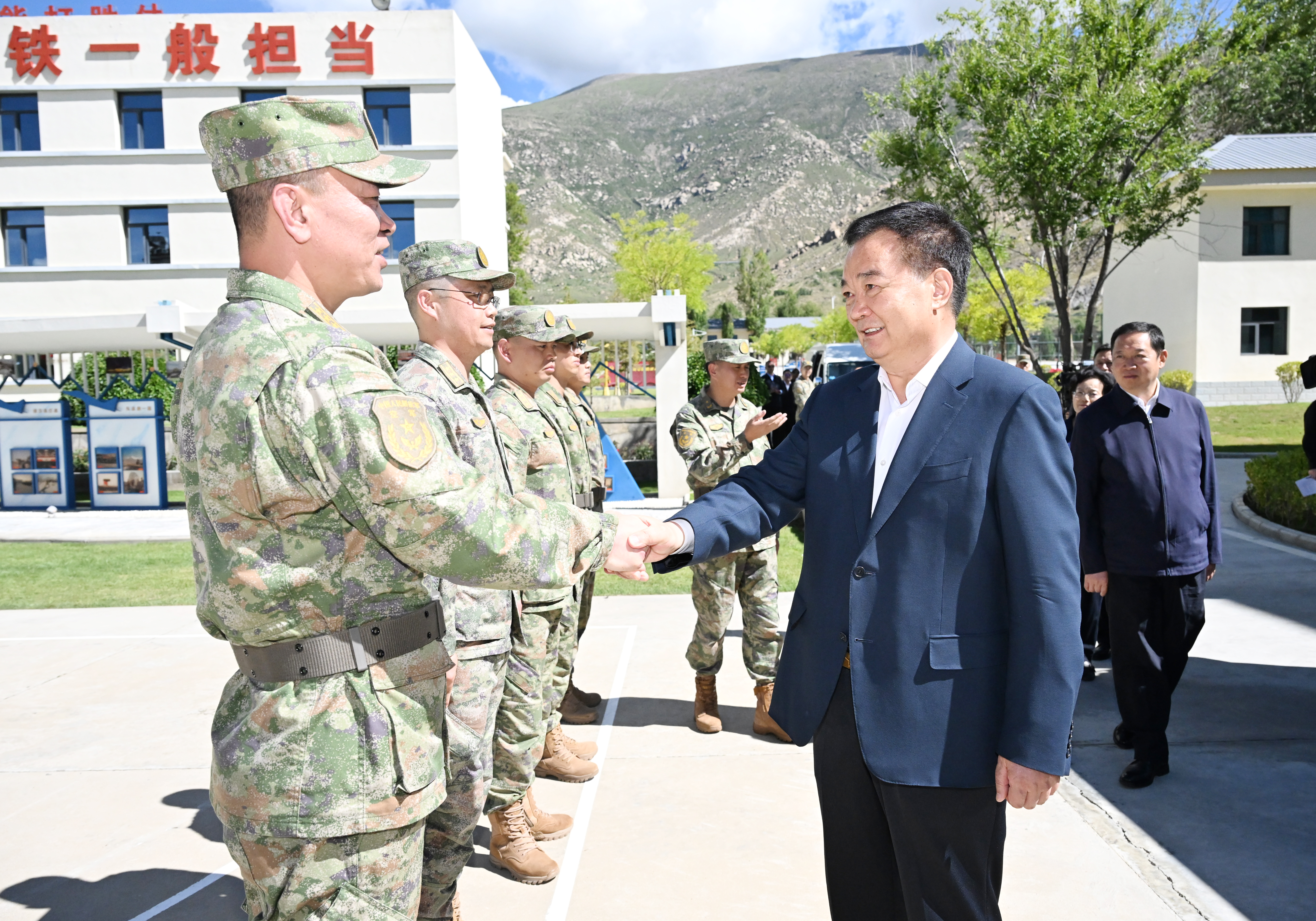 八一建軍節(jié)來臨之際,7月31日,自治區(qū)黨委書記、西藏軍區(qū)黨委第一書記王君正在拉薩看望慰問駐藏部隊(duì)官兵,代表自治區(qū)黨委、政府向全區(qū)廣大駐藏人民解放軍指戰(zhàn)員、武警部隊(duì)官兵、民兵預(yù)備役人員和退役軍人致以節(jié)日祝賀。
