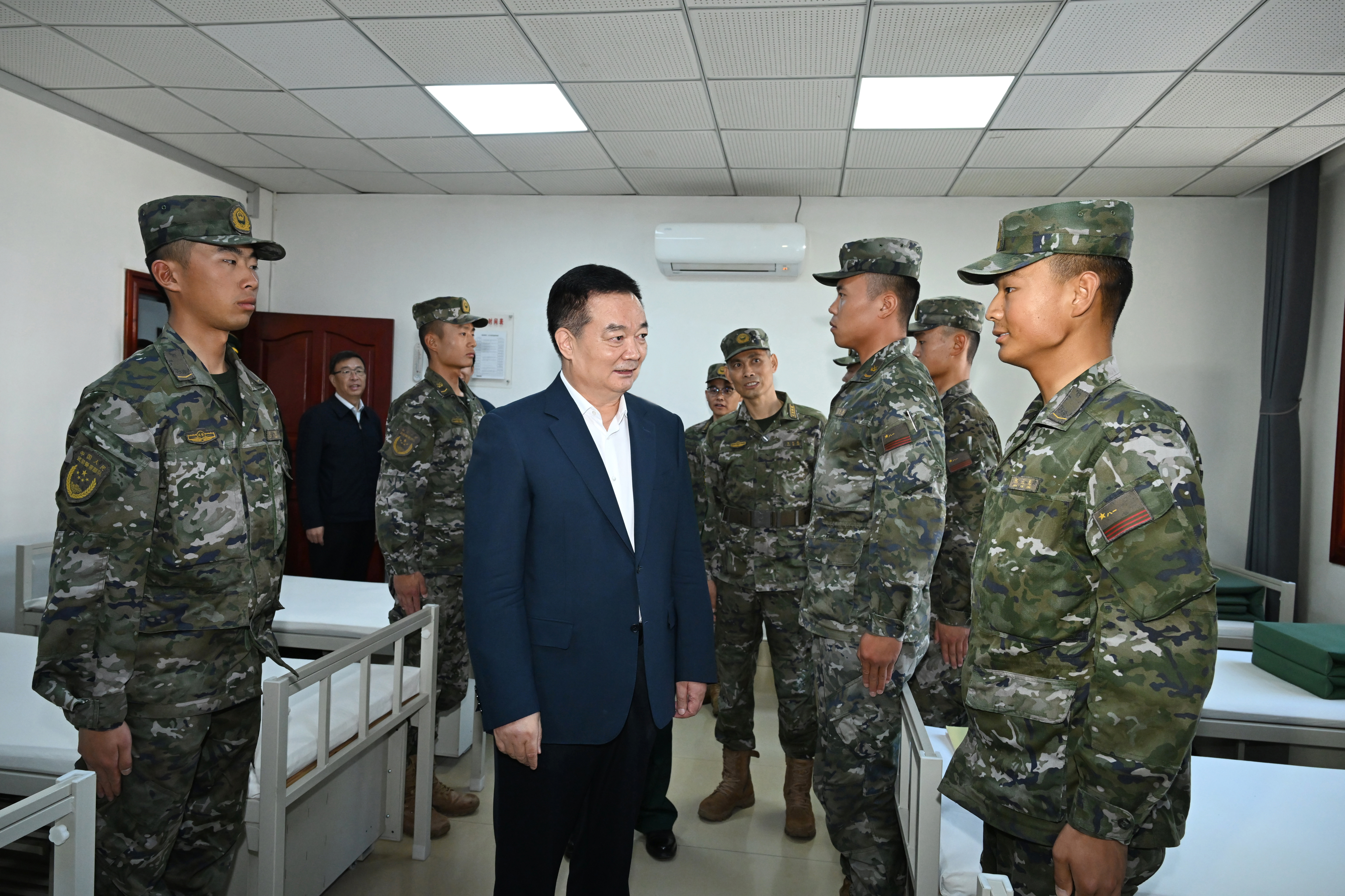 八一建軍節(jié)來臨之際,7月31日,自治區(qū)黨委書記、西藏軍區(qū)黨委第一書記王君正在拉薩看望慰問駐藏部隊(duì)官兵。這是王君正在武警西藏總隊(duì)某中隊(duì)了解官兵生活情況。記者 李洲 攝