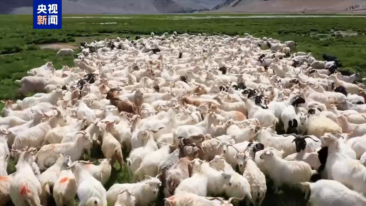 西藏阿里地區(qū)日土縣日土村黨支部書記 嘎瑪多吉:我們合作社那邊羊一千五百多只,羊絨一千多斤,今年比去年高一點。