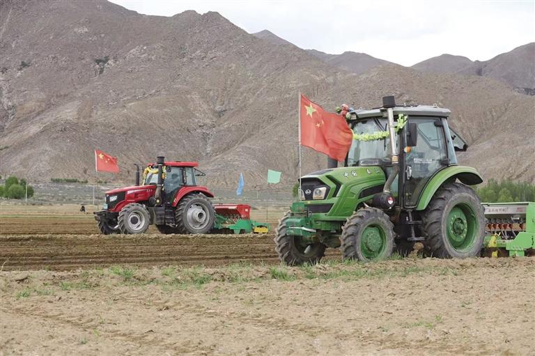 2025年5月22日,日喀則市桑珠孜區(qū)東嘎鄉(xiāng)色定村村民春耕春播。西藏日?qǐng)?bào)記者 旦增嘎瓦 攝