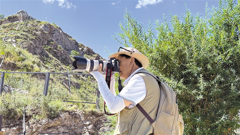 拉薩市民用相機記錄公園美景。