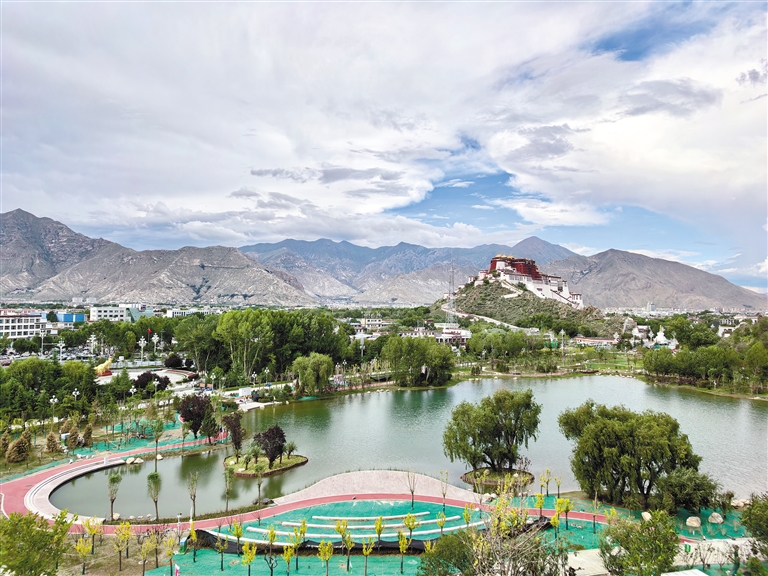 拉薩團結(jié)公園坐落于布達(dá)拉宮西麓、藥王山腳下。走進拉薩團結(jié)公園,你可在蜿蜒的登山步道登高望遠(yuǎn),可欣賞倒映古城風(fēng)貌的瀲滟波光,可在園內(nèi)悠然漫步、散步遛娃,盡享愜意時光,也可擁抱自然,享受“林在城中、城在綠中、人在景中”的別樣精致。