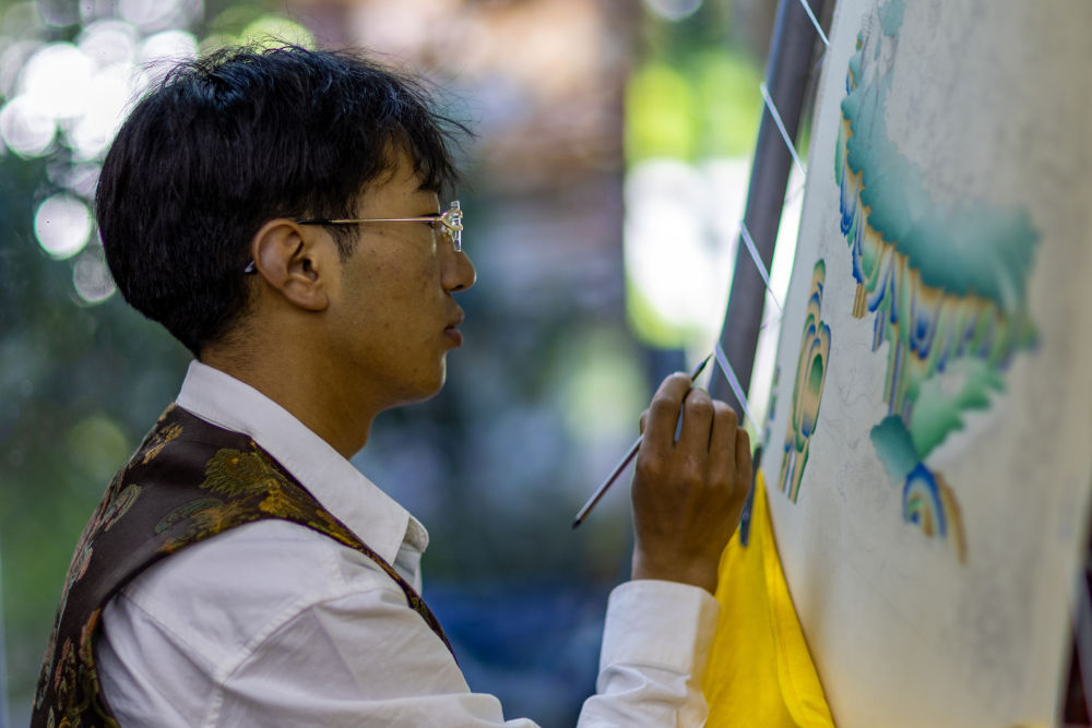 8月6日,一名畫(huà)師在繪制唐卡。藏族唐卡(齊吾崗派)入選國(guó)家級(jí)非物質(zhì)文化遺產(chǎn)代表性項(xiàng)目名錄。