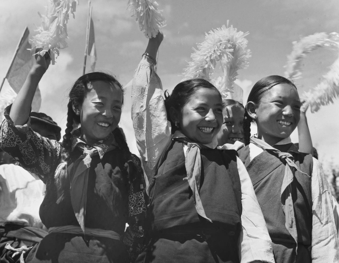 1965年9月,藏族兒童在西藏自治區(qū)成立大會(huì)上歡呼。新華社記者 馬競秋 攝