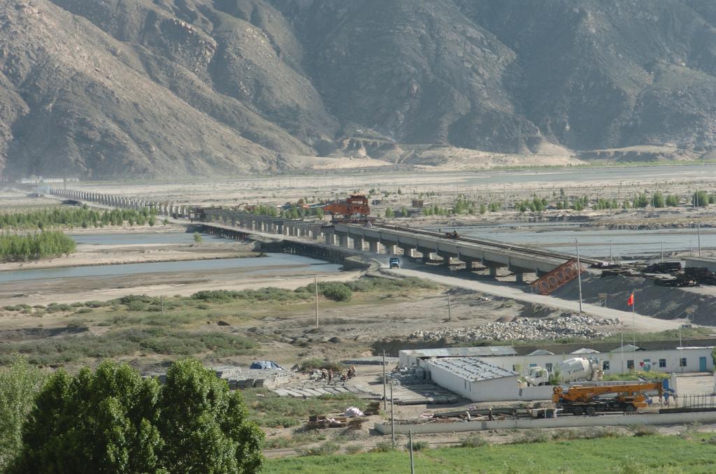 這是2004年6月7日拍攝的建設(shè)中的跨雅魯藏布江特大橋。新華社記者 土登 攝