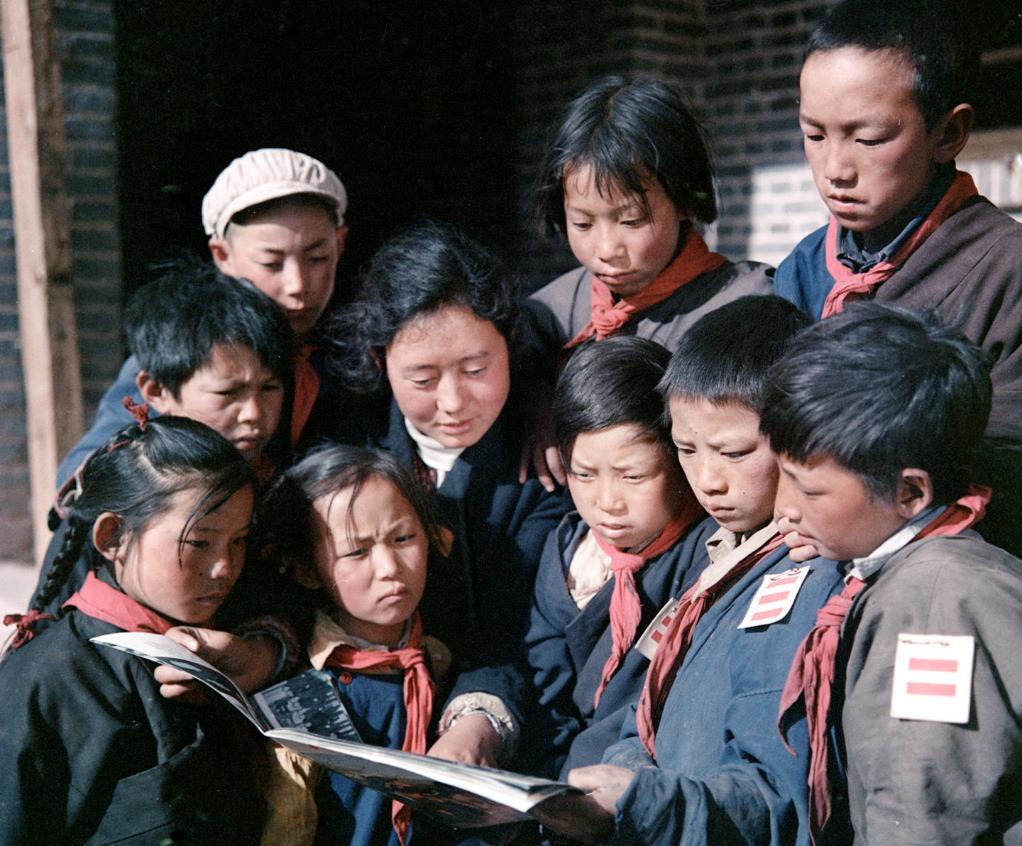 1965年9月,西藏昌都實(shí)驗(yàn)小學(xué)的老師和學(xué)生在看畫報(bào)。新華社記者 馬競秋 攝