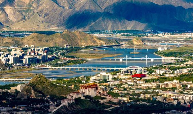 這是2025年7月30日拍攝的拉薩河風(fēng)光,由近及遠(yuǎn)分別是連心橋、柳梧大橋、和美橋和青藏鐵路拉薩河特大橋。圖片來源:新華社