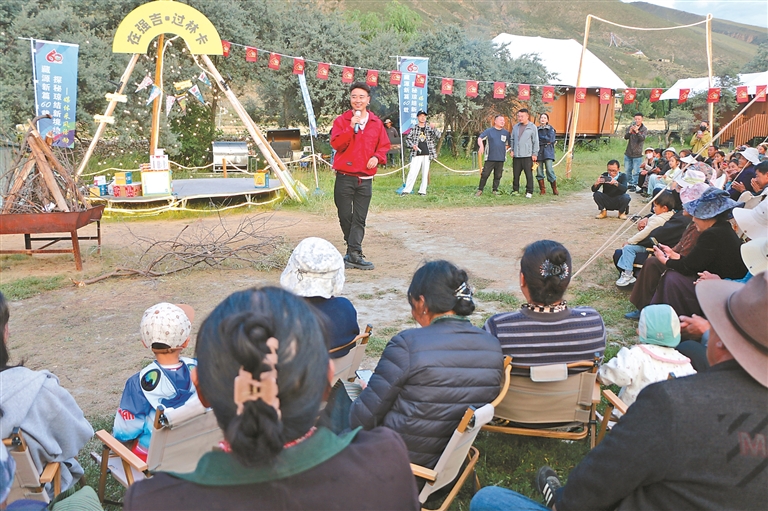 傍晚時分,強吉村篝火晚會開啟。村民身著盛裝,攜手跳起鍋莊,網(wǎng)絡達人紛紛舉起相機加入行列。歌聲、笑聲、鼓聲融為一體,久久回蕩。