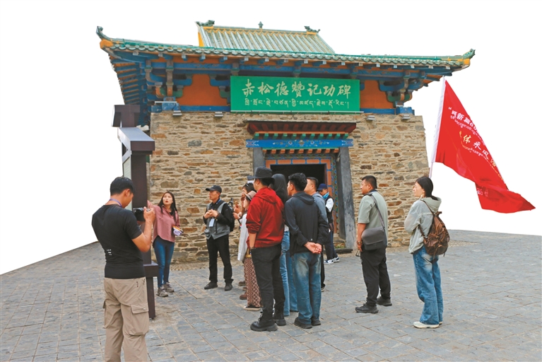 圖為網(wǎng)絡達人參觀拍攝瓊結縣赤松德贊記功碑。