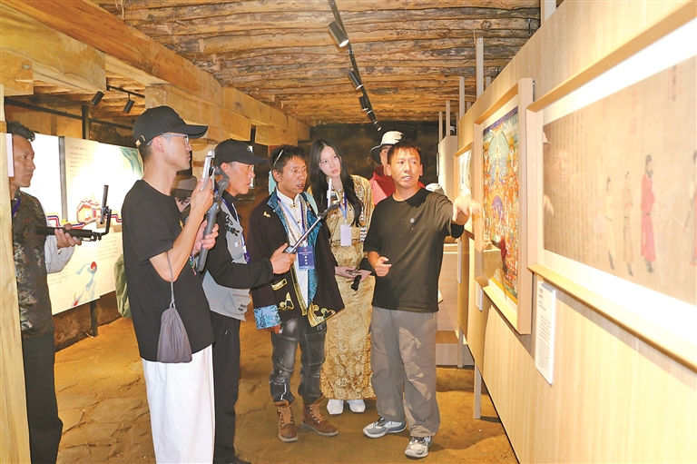 圖為網(wǎng)絡達人參觀拍攝瓊結縣歷史美女達娃卓瑪身著的傳統(tǒng)服飾。