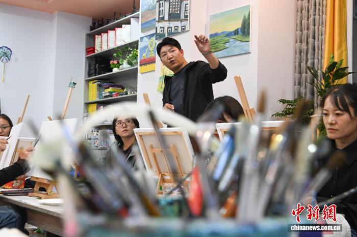 9月1日,2025年西藏自治區(qū)拉薩市第二期“青年夜校”正式開班。圖為夜校學員在上美術課。中新社記者 貢嘎來松 攝