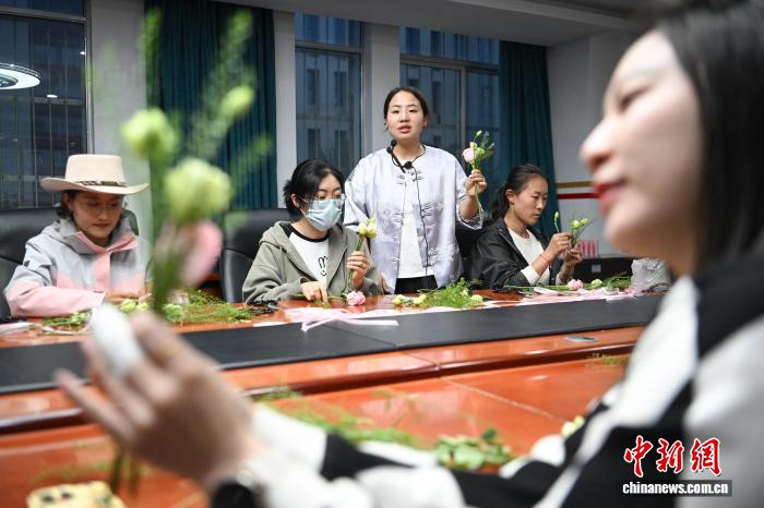 9月1日,2025年西藏自治區(qū)拉薩市第二期“青年夜?!闭介_班。圖為夜校學員在上花藝課。中新社記者 貢嘎來松 攝