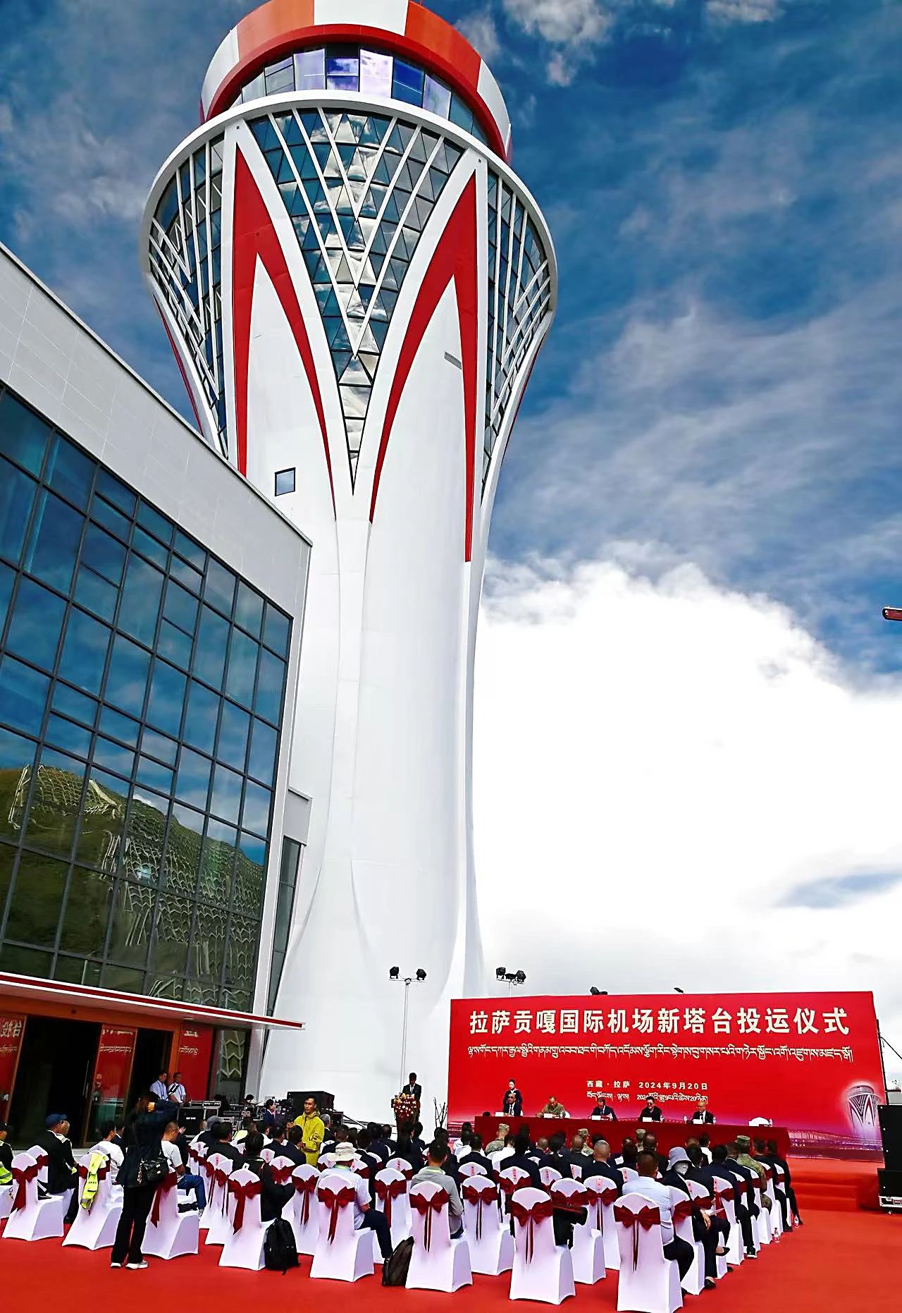 2023年12月26日,拉薩貢嘎機場新建第二跑道投用,正式進入雙跑道運行時代,成為國內(nèi)首個使用雙跑道運行的高高原機場。同年12月28日,拉薩貢嘎機場T2航站樓整體改擴建工程建成投用,國際功能區(qū)正式啟用,樓內(nèi)配備了集中供暖和彌散式供氧系統(tǒng),大幅提升了旅客體驗。2024年6月30日,拉薩貢嘎機場T1航站樓改擴建工程建成投運,成為西藏空港“會客廳”和藏式建筑的典范;同年7月8日,拉薩貢嘎機場正式更名為拉薩貢嘎國際機場,這一名稱的變更不僅體現(xiàn)了拉薩貢嘎國際機場的國際化視野和戰(zhàn)略定位,更彰顯了其在西藏民航事業(yè)中的重要地位和作用。同年9月20日,國內(nèi)建筑面積最大、高度最高的高高原塔臺——拉薩貢嘎國際機場新塔臺正式投入運行。新塔臺高55.6米,設(shè)置了11個管制席位,集成了通信、導(dǎo)航、監(jiān)視、氣象等尖端技術(shù),配備了空管CDM系統(tǒng)、數(shù)字空管集成系統(tǒng)等國產(chǎn)化先進設(shè)備,實現(xiàn)了高度自動化和智能化,使管制員能實時精準掌握空中和地面動態(tài)。
