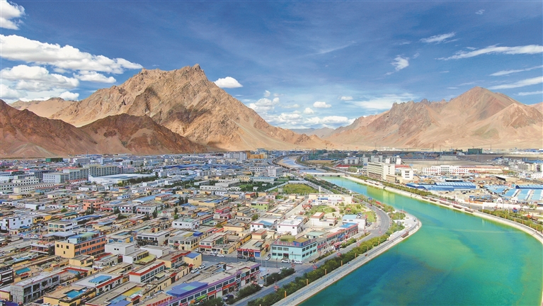 圖為綠意環(huán)繞的獅泉河鎮(zhèn)。記者 洛桑旦增 達(dá)珍 永青 攝